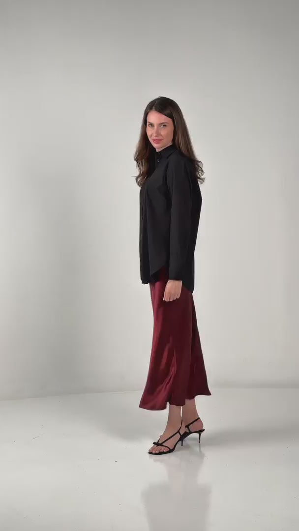 • Pleated Maxi Skirt with Front Slit