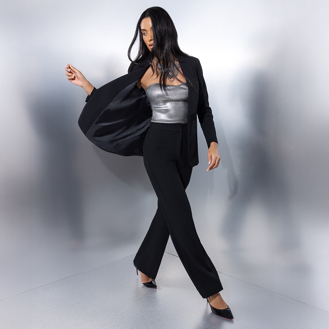 Silver Strapless Sweetheart Neck Metallic Knit Top